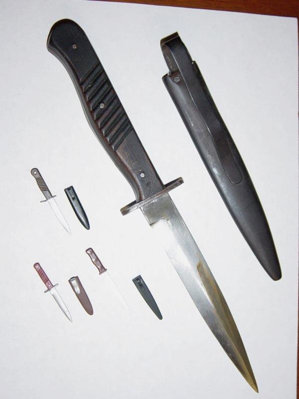 Here are some pictures of my real german close quarters combat knife along with pictures of 1/6th TUS,